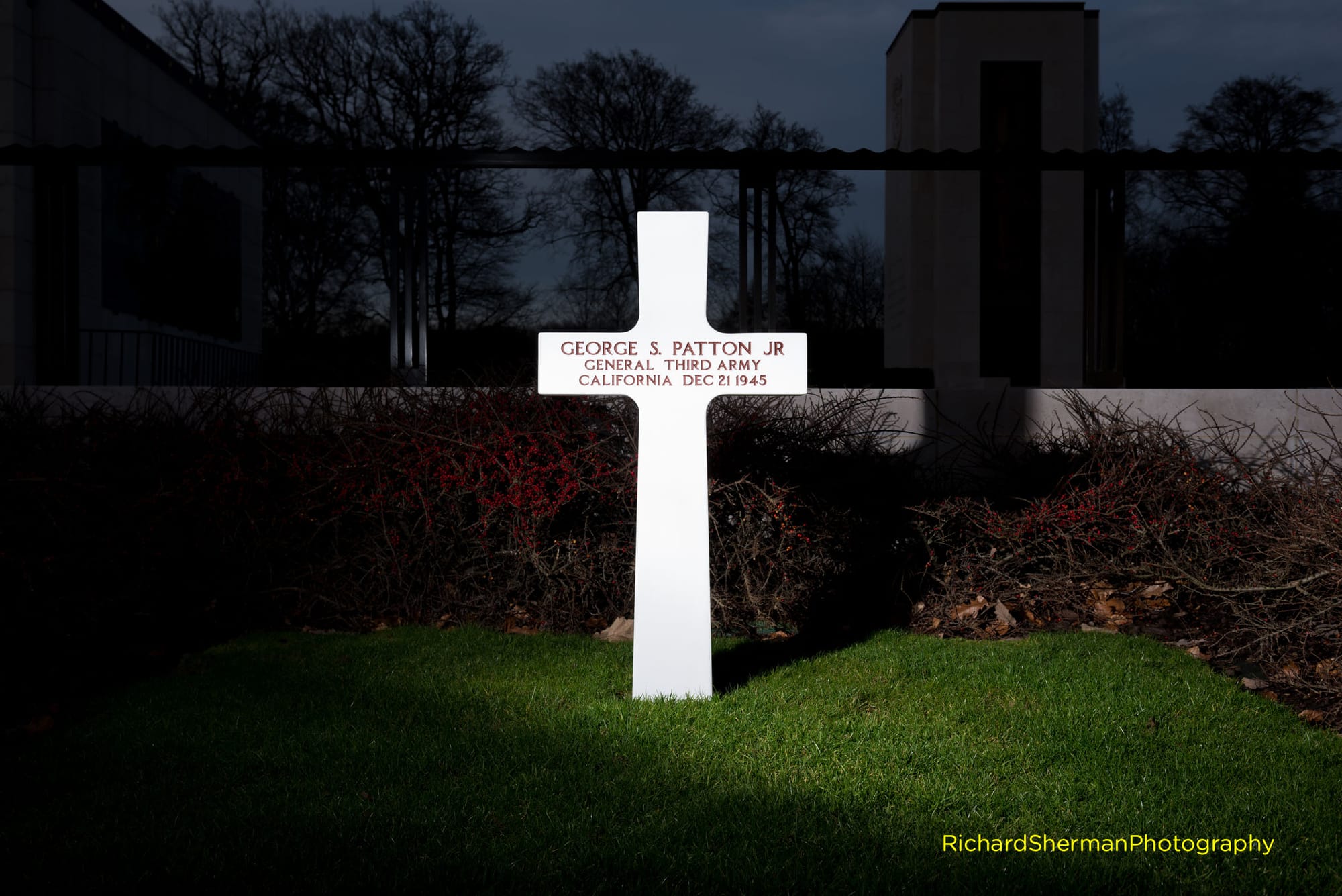 Headstone of GEN George Patton December 21, 1945 Luxembourg American CemeteryLuxembourg American Cemetery and is the final resting place of GEN Patton as well as five members of Easy Company of the 506th Parachute Infantry Regiment,the paratroopers honored in Steven Ambrose’s book, movie and series, “Band of Brothers.” Many of the nearly 5,500individuals memorialized here fought in the Battle of the Bulge during the bitterly cold winter of 1944-1945. A temporary cemetery was originally established herein December 1944 and was formally dedicated in July 1960. GEN Patton, who was paralyzed in a vehicle crash in Bavaria in December 1945, was laid to rest at Luxembourg American Cemetery on Christmas Eve 1945.