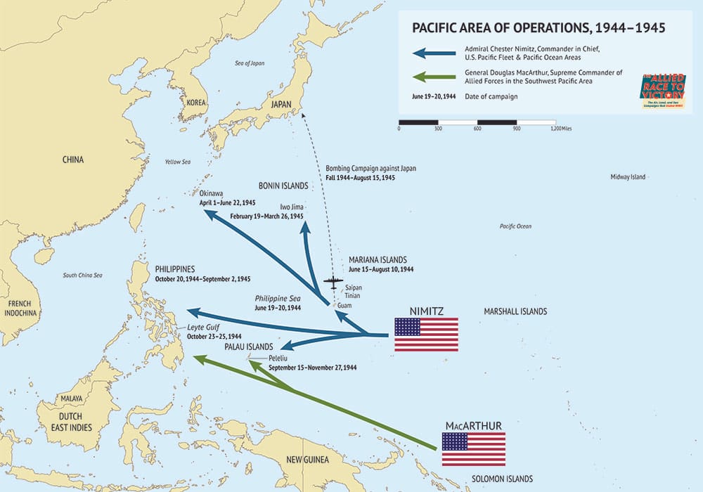 The Southern Campaign was not moving fast enough for Admiral Ernest King’s liking. Instead of the relatively small leaps of island-hopping MacArthur was conducting, King envisioned leaps of hundreds of miles at a time across the Pacific. The Central route would allow the navy to come into direct conflict with the remaining main Japanese battle fleet, the environment was better, and ultimately the Central Pacific was a more direct route to the Japanese homeland. As soon as we seized a few islands near the homeland, construction could begin on massive air bases from which to bomb the war machine into cinders at its source. MacArthur, who was ever conscious of any slight and the impact on his public image, was not happy with this. He suspected President Roosevelt of trying to sabotage the South Pacific campaign out of the fear that a victorious (and known Republican) MacArthur would wage the upcoming 1944 presidential campaign against him. This accusation was not true, and I think that it was pretty clear that we would have and should have focused on the Central Pacific route from the beginning had MacArthur and his star power did not force the southern strategy, but hey, that’s just me.