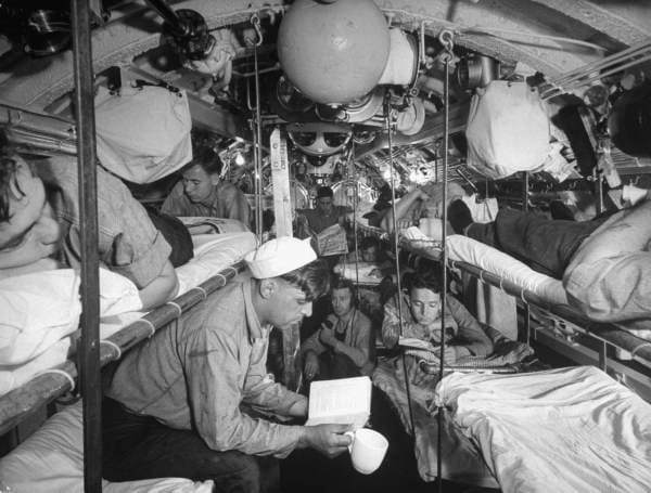 Aboard the old, World War II-era submarines, life was… not great. The boats were small, men shared racks in a delightful process called hot-racking because the tiny rack you split with another sailor was still hot from his body heat when you swapped spots so you could sleep. There was no bath or shower, just a bucket and sponge, sailors ate in whatever corner they could find, and the air during long dives became fetid with cigarette smoke, body odor and fumes.